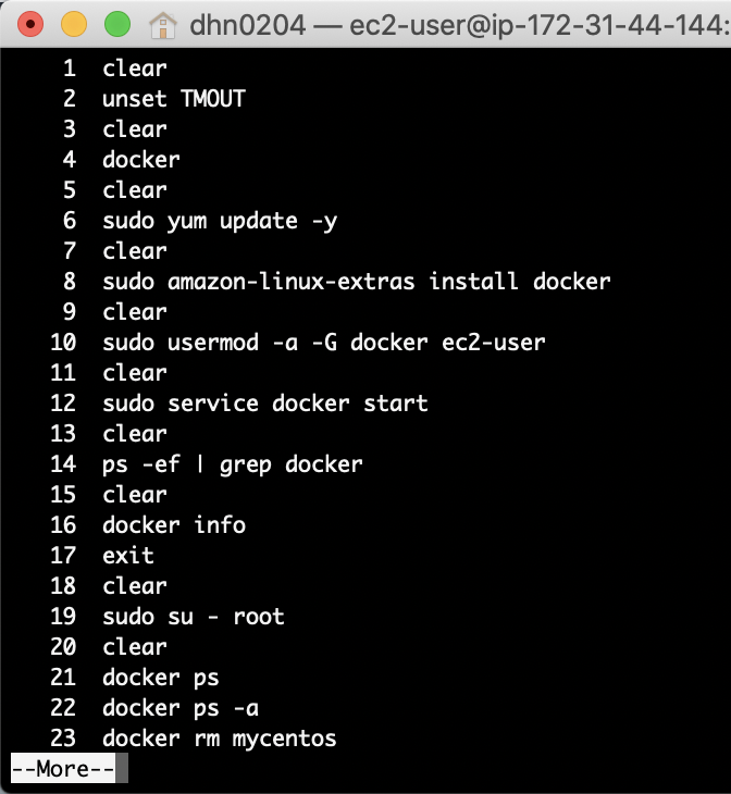 pipe & more command 와 함께 사용하면 보다 편리하게 history 를 확인할 수 있습니다.