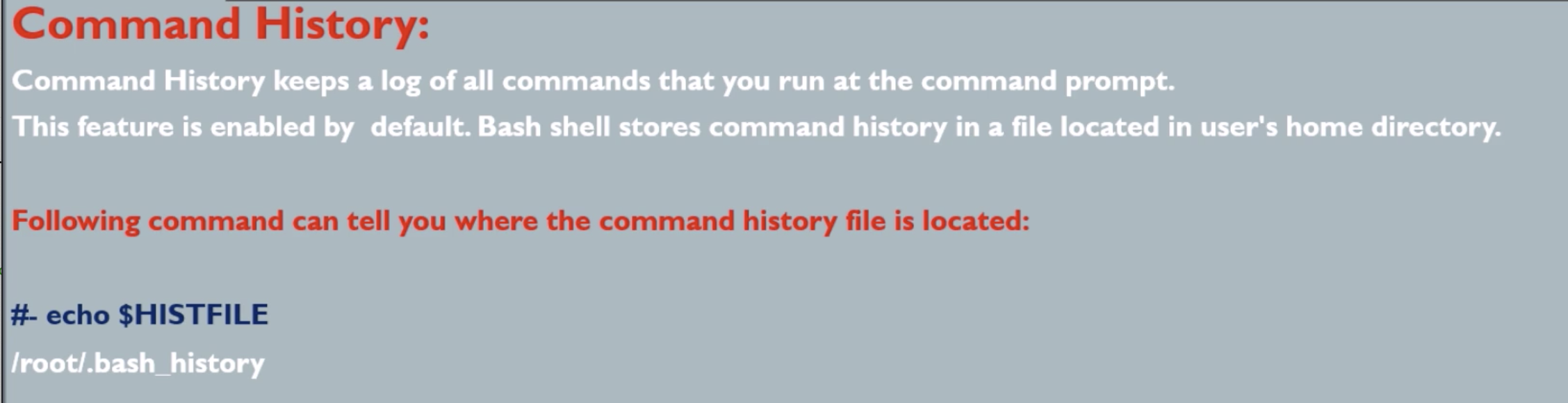 linux 의 bash shell 은 default 로 사용자가 입력한 모든 command 의 기록을 파일에 기록해둡니다.