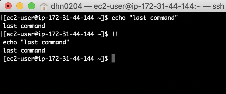 가장 최근에 실행한 command 를 재실행 하고 싶을 경우 다음과 같이 입력합니다.