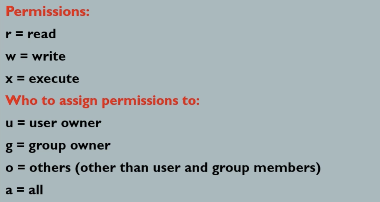 한줄의 명령어로 user / group / other 에게 한번에 permission 을 add / remove / set 할 수도 있습니다.