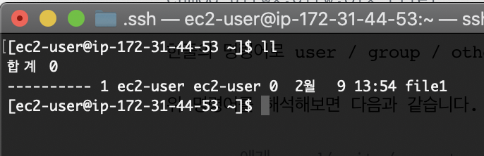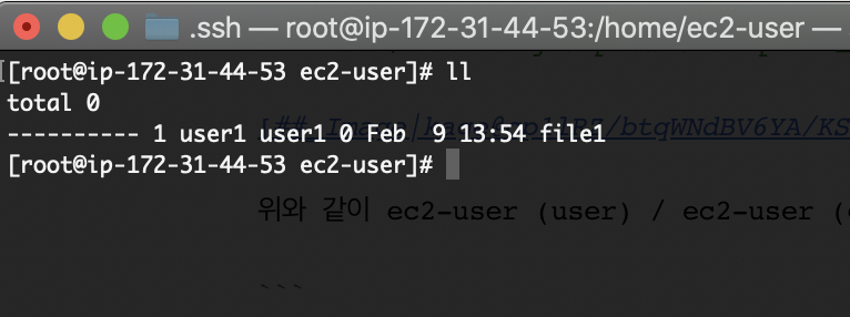 위와 같이 ec2-user (user) / ec2-user (group) ownership 을 가지고 있는 파일이 있을 경우.