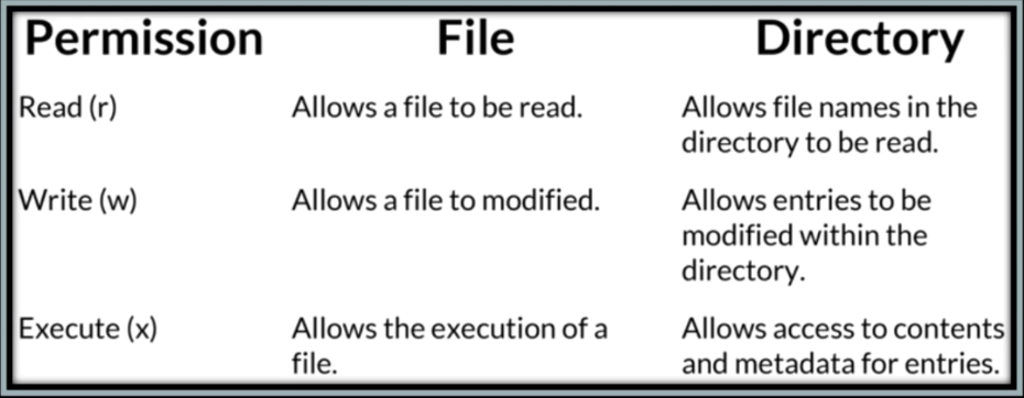 directory permission 은 다음과 같이 조금 다른 의미로 해석됩니다.