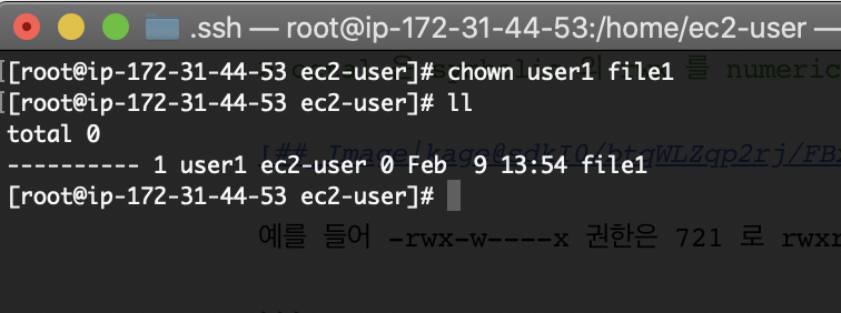 다음으로 위의 명령어를 입력해 file1 의 user ownership 을 변경 할 수 있습니다.