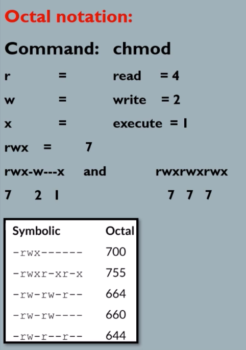 octal 은 symbolic 의 rwx 를 numeric 하게 풀어서 사용합니다.