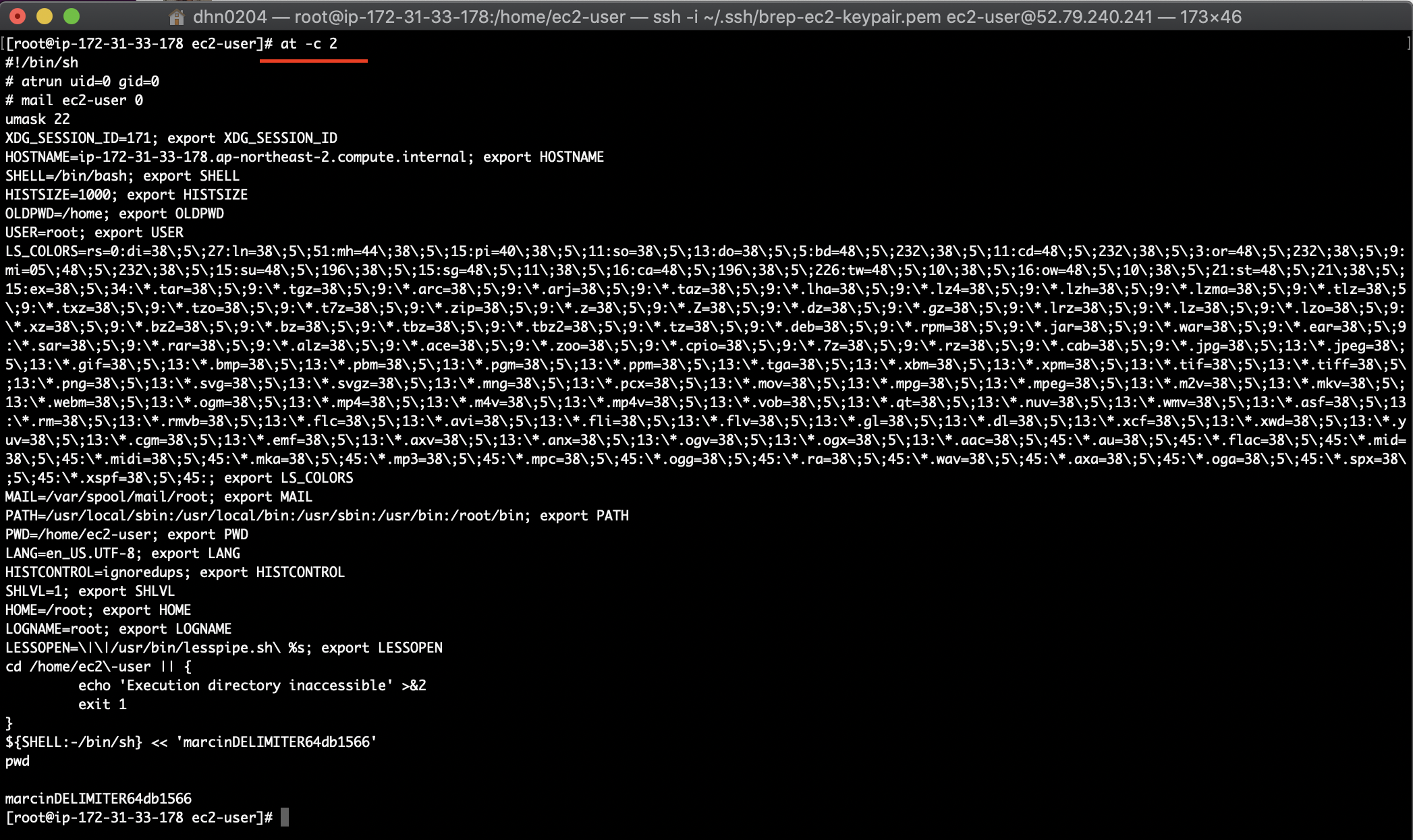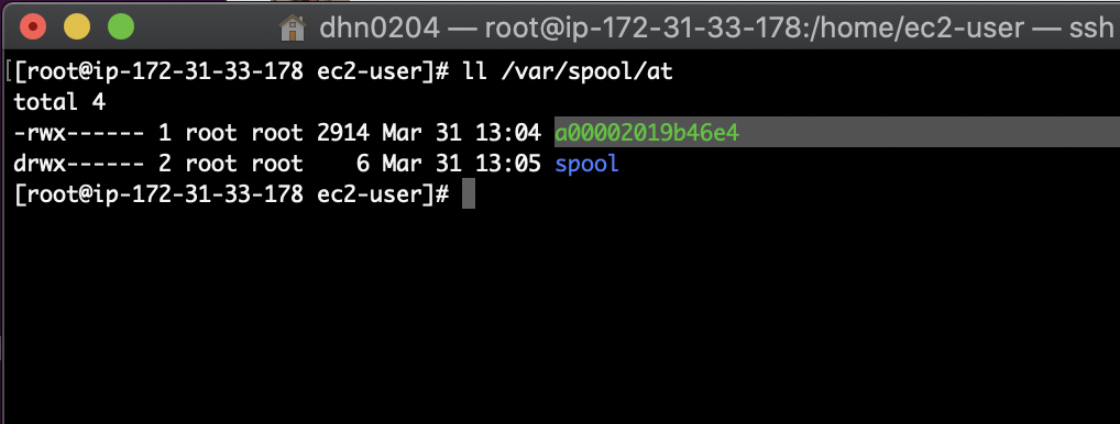 먼저 /var/spool/at/ directory 에 생성된 job 을 cat 명령어로 직접 확인할 수 있습니다.