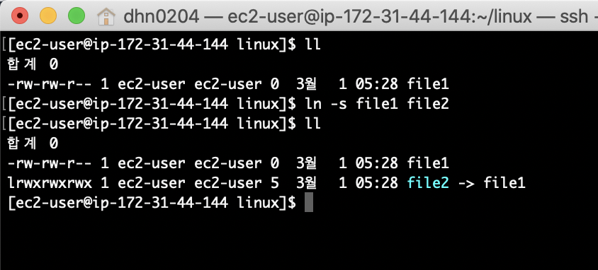 hard link 를 생성하기 위해 다음과 같이 입력합니다.