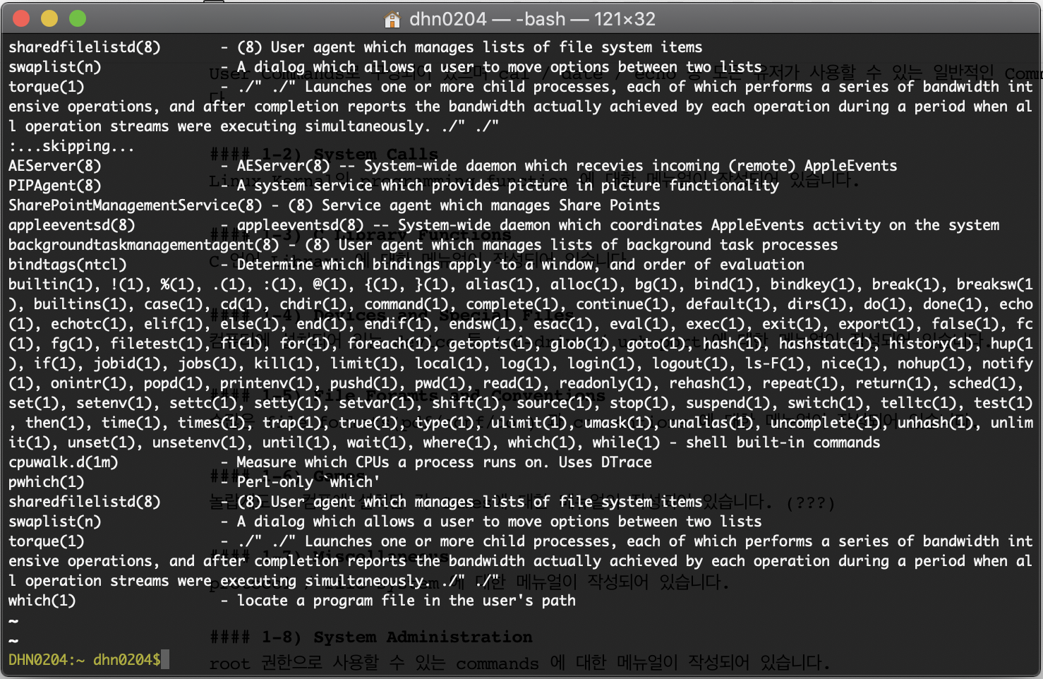 찾고자하는 Commands의 Manual 위치를 확인한뒤에는 실제 Manual을 열어 해당 Commands의 사용법을 확인할 수 있습니다.