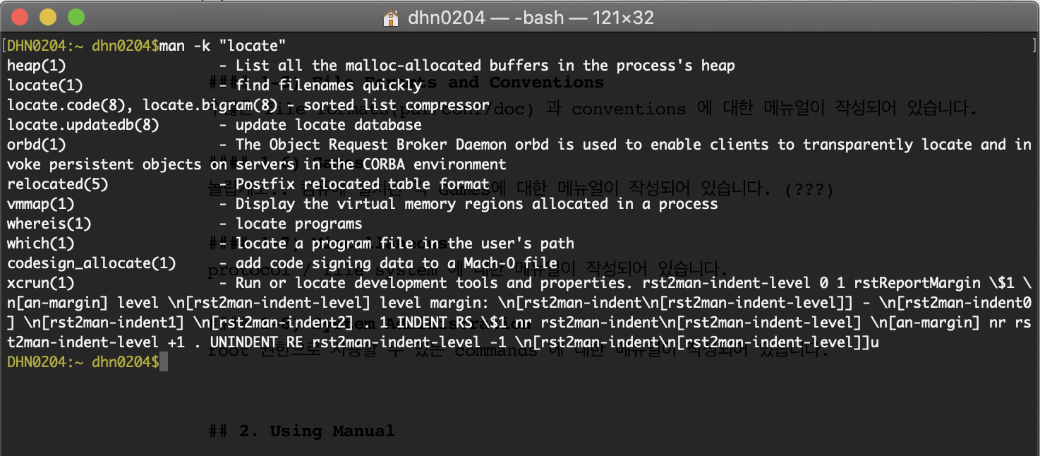 이를 위해 다음의 명령어를 사용해 내가 찾고자하는 commands의 manual 위치를 확인합니다. -k (search option)