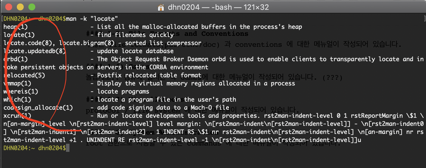 위 결과를 해석해보자면, which commands는 section1 (user commands)에 manual이 작성되어 있고, locate.updatedb commands는 section8 (system administration)에 manual이 작성된 것으로 이해할 수 있습니다.