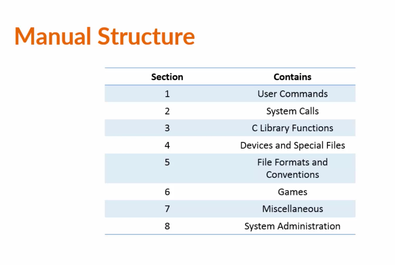 linux의 manual은 다음과 같은 구조로 구성되어 있습니다.