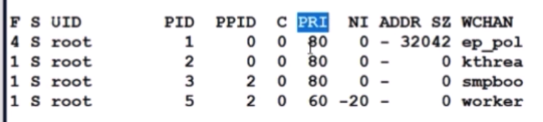 PRI(priority) 값은 0 부터 139 까지 가질 수 있으며 0 은 가장 높은 우선순위를, 139는 가장 낮은 우선순위를 의미합니다.