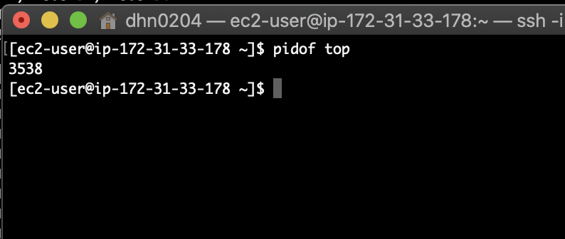 예를 들어 top process 의 PID 값을 확인하기 위해선 다음과 같이 입력합니다.