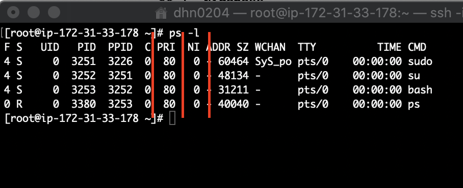 실제 위 명령어를 실행한 뒤 ps 명령어로 NI 값을 확인해보면