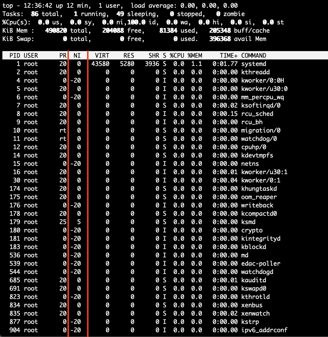process 별 niceness 값은 top 명령어로 확인할 수 있습니다.