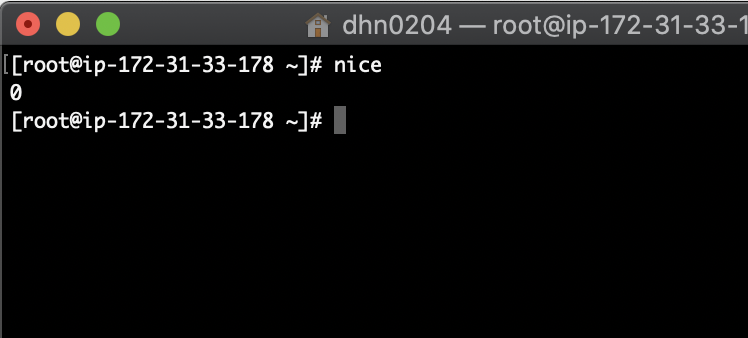 system 의 default niceness 값을 확인하고 싶으면 다음과 같이 입력합니다.