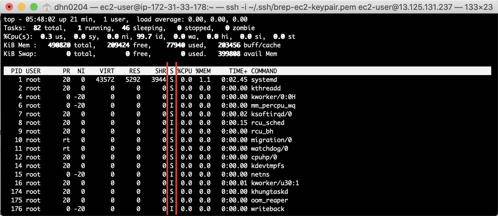 process 의 states 는 top 명령어로 확인할 수 있습니다.