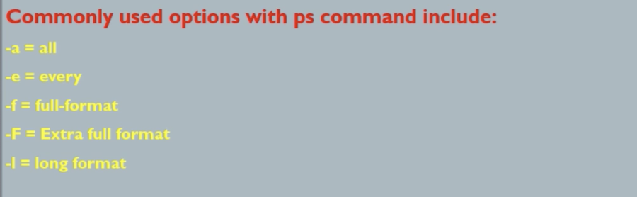 ps command 는 다양한 optaions 과 함께 사용할 수 있습니다.
