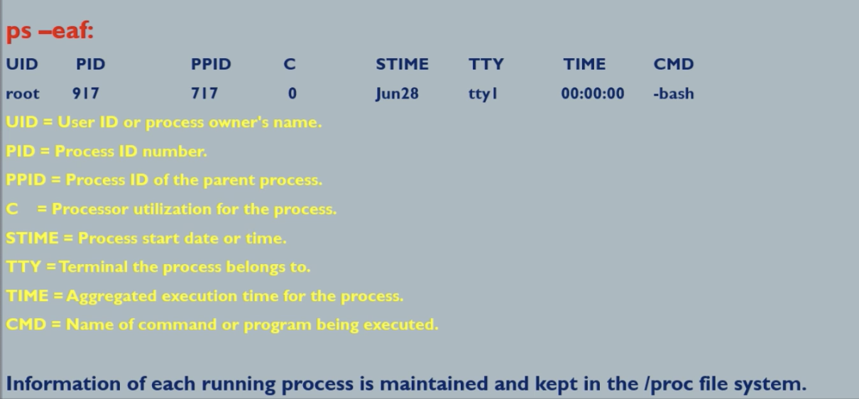 ps -eaf기존 ps 명령어로는 확인할 수 없었던 system process 와 각 process의 detail 한 정보를 확인할 수 있습니다.