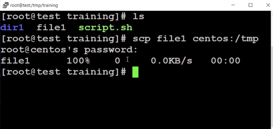예를 들어.. 'root' 유저를 사용해 'centos' 라는 hostname 을 가진 server 의 '/tmp' directory 에 'file1' 을 secure transfer 하고 싶을 경우 다음과 같이 입력합니다.