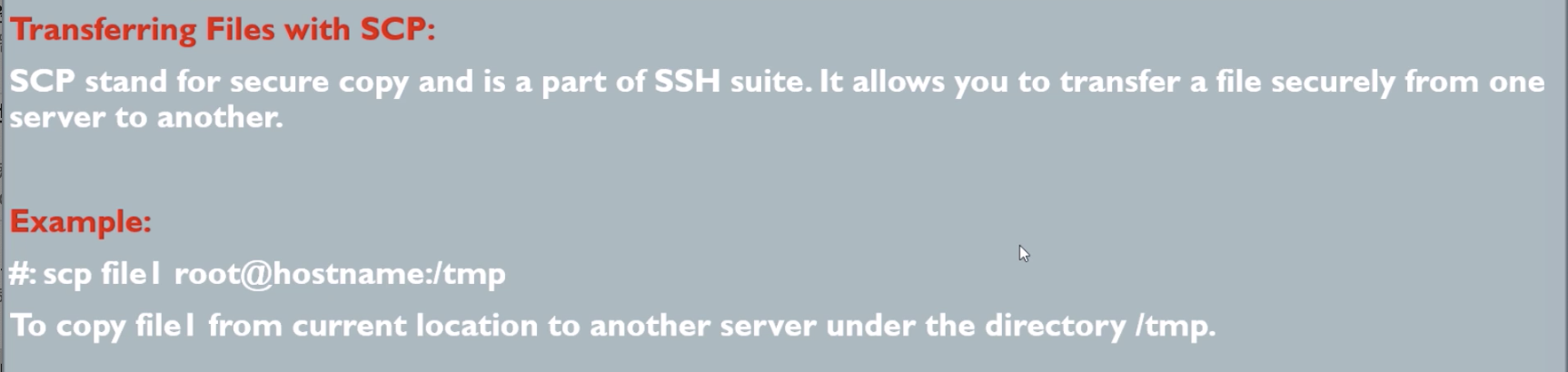 scp 는 SSH 의 기능 중 한 부분으로. 이를 사용하면 server to server 로 file 을 secure 하게 transfer 할 수 있습니다.