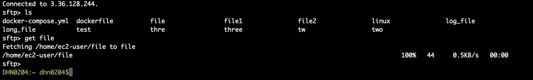 반대로 get 명령어를 사용하면 connect 한 server 의 file 을 내려받을 수 도 있습니다.