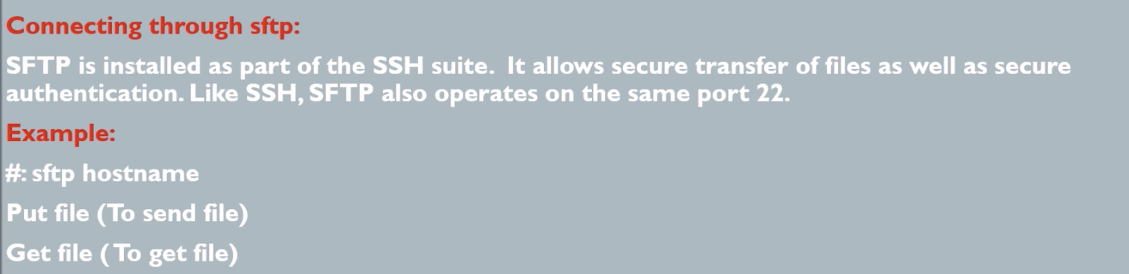 sftp 는 SSH 파일 전송 프로토콜로.. scp 와 동일하게 sercure file transfer 를 제공합니다.