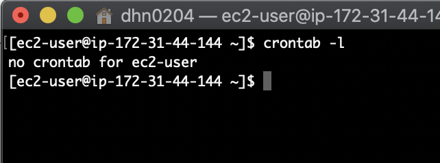 crontab -r삭제 후 crontab list 를 확인해보면 아무것도 존재하지 않는 것을 확인할 수 있습니다.