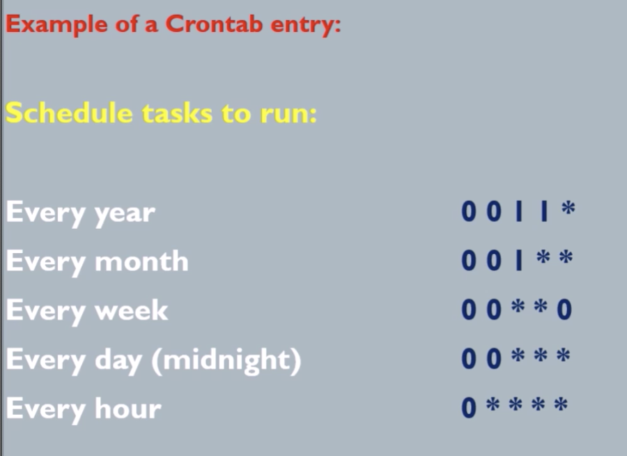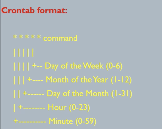 실제로 시스템에 cron job 을 등록하기 위해선 crontab 에 schedule 정보를 입력해야 하며, 입력 format 은 다음과 같습니다.