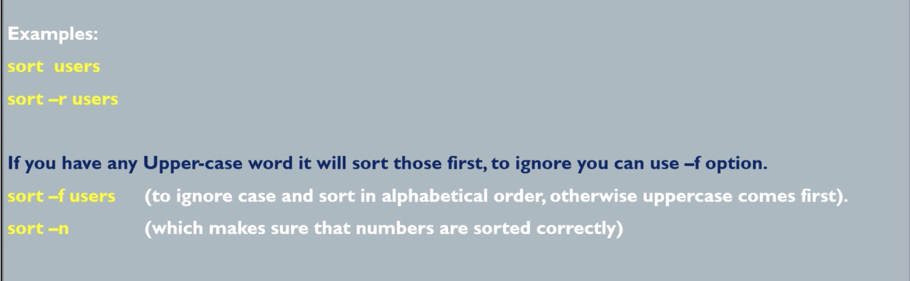 이외에도 '-f' 옵션을 사용하면 대소문자 구분없이 알파벳 순으로 정렬할 수 있으며,