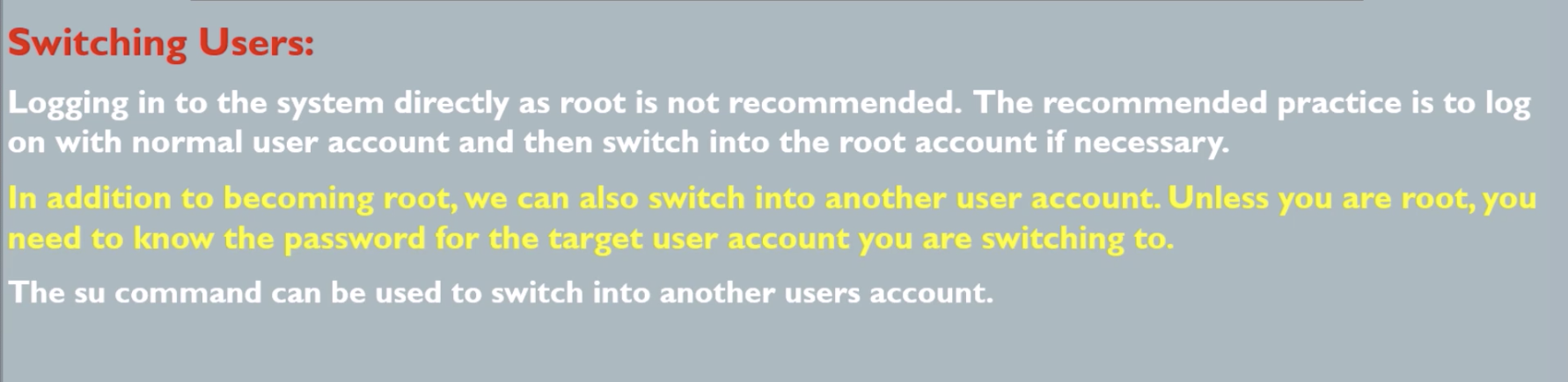 반면.. 기존에 login 되어있던 계정이 root 계정인 경우 별도의 password 입력 없이 user 를 자유롭게 switch 할 수 있습니다.