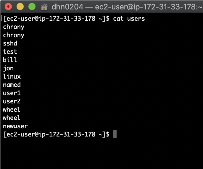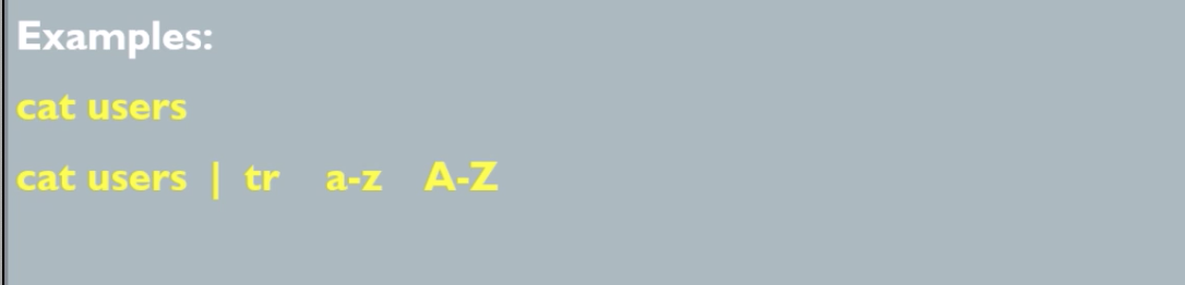 cat users | tr a-z A-Z파일내의 모든 소문자가 대문자로 변한되어 console 에 출력됩니다.