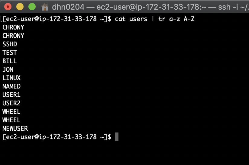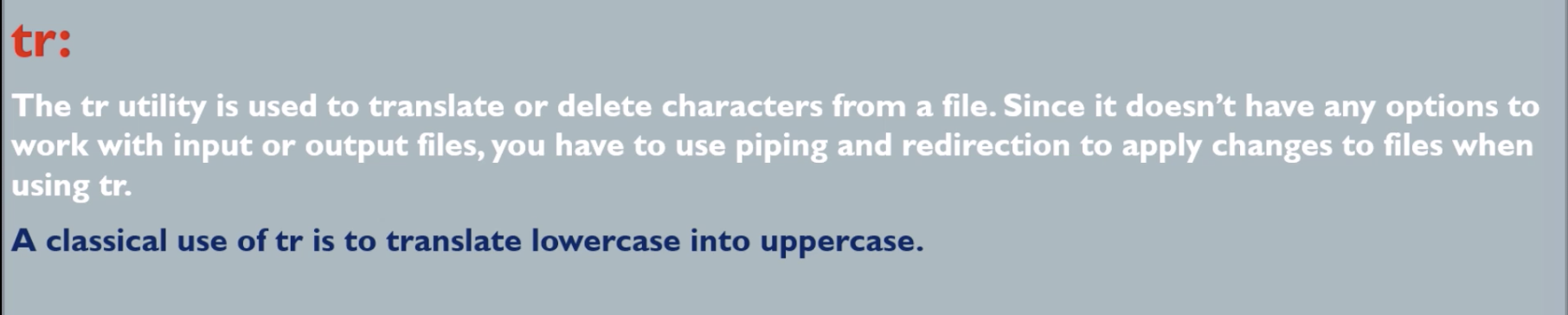 따라서 tr 을 사용해 변환한 값을 반영 및 저장하기 위해서는 piping 과 redirection 을 사용해야 합니다.