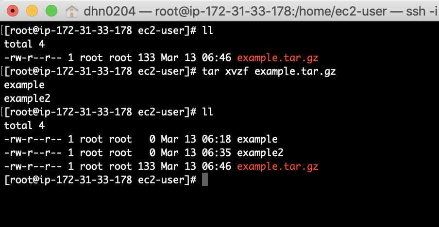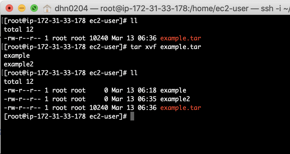 tar xvf example.tar결과는 다음과 같습니다.