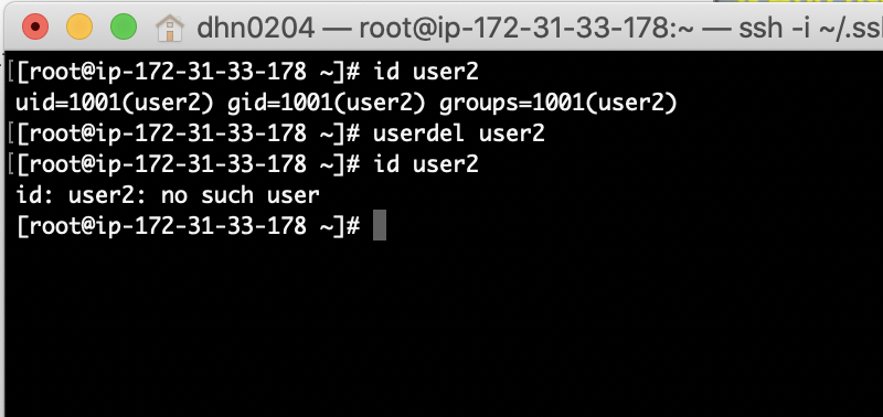 user 를 삭제하기 위해선 userdel 명령어를 사용합니다.