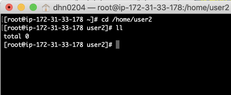 그 결과 user2 의 home directory 인 /home/user2 도 같이 삭제된 것을 확인할 수 있습니다.