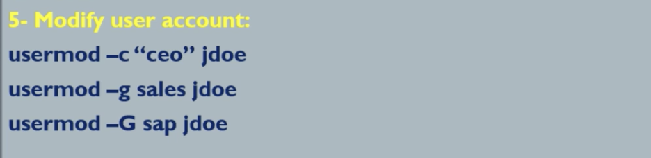 이미 생성된 user account 의 정보는 usermod 명령어를 사용해 변경할 수 있습니다.
