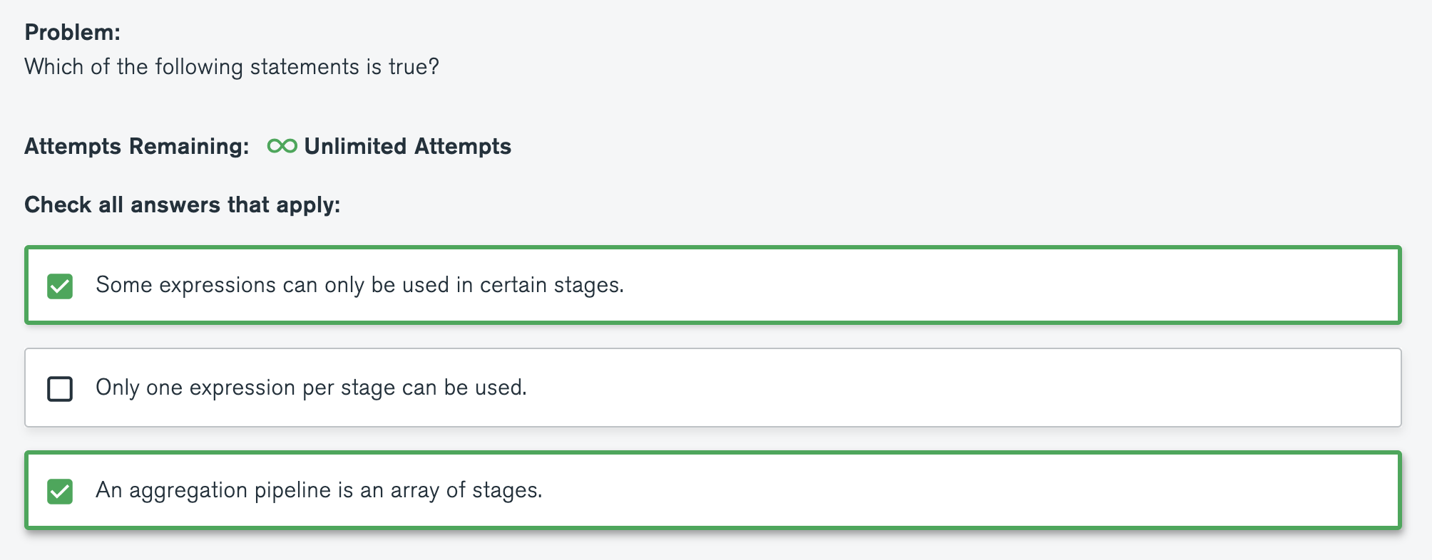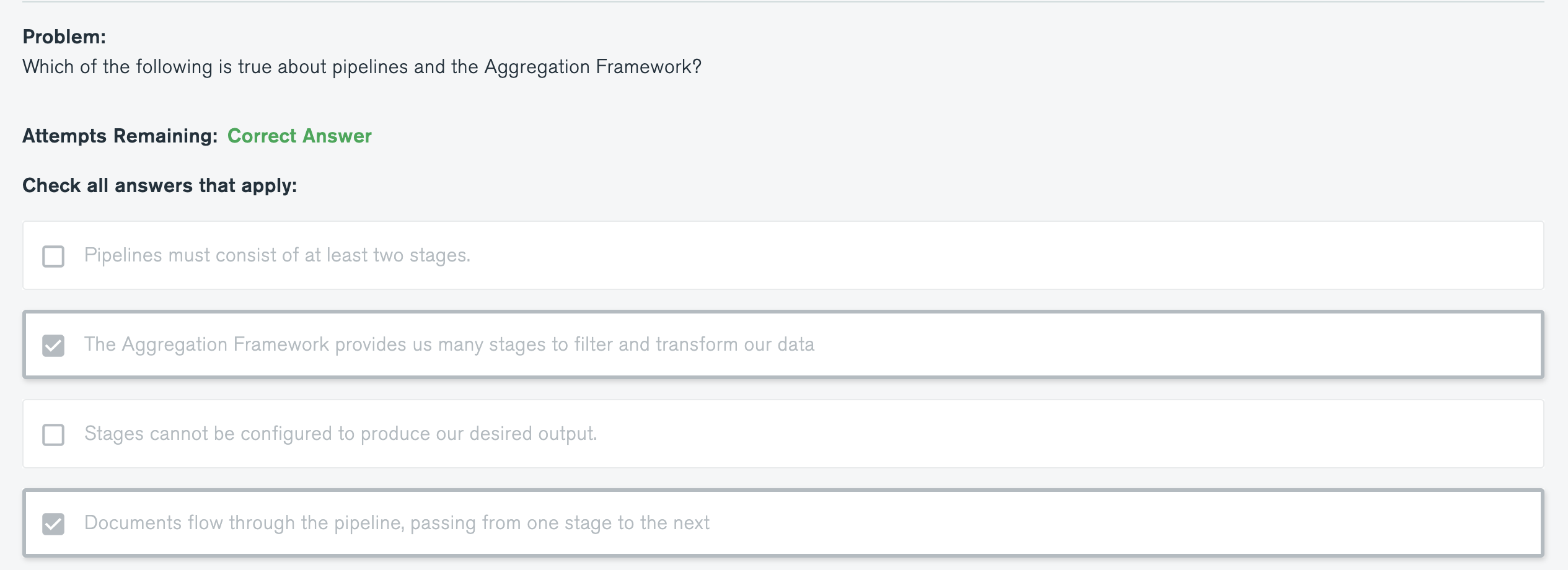 Quiz : Which of the following is true about pipelines and the Aggregation Framework?