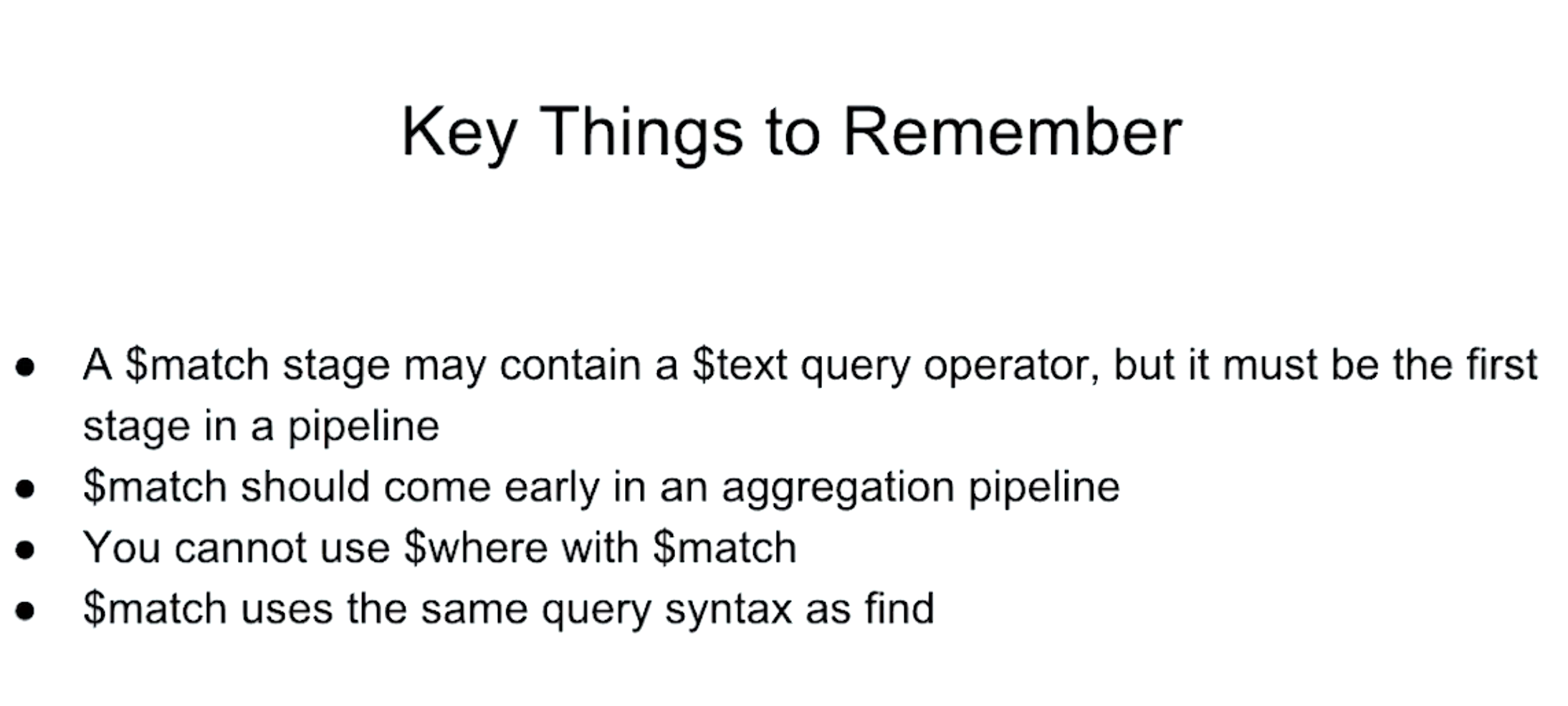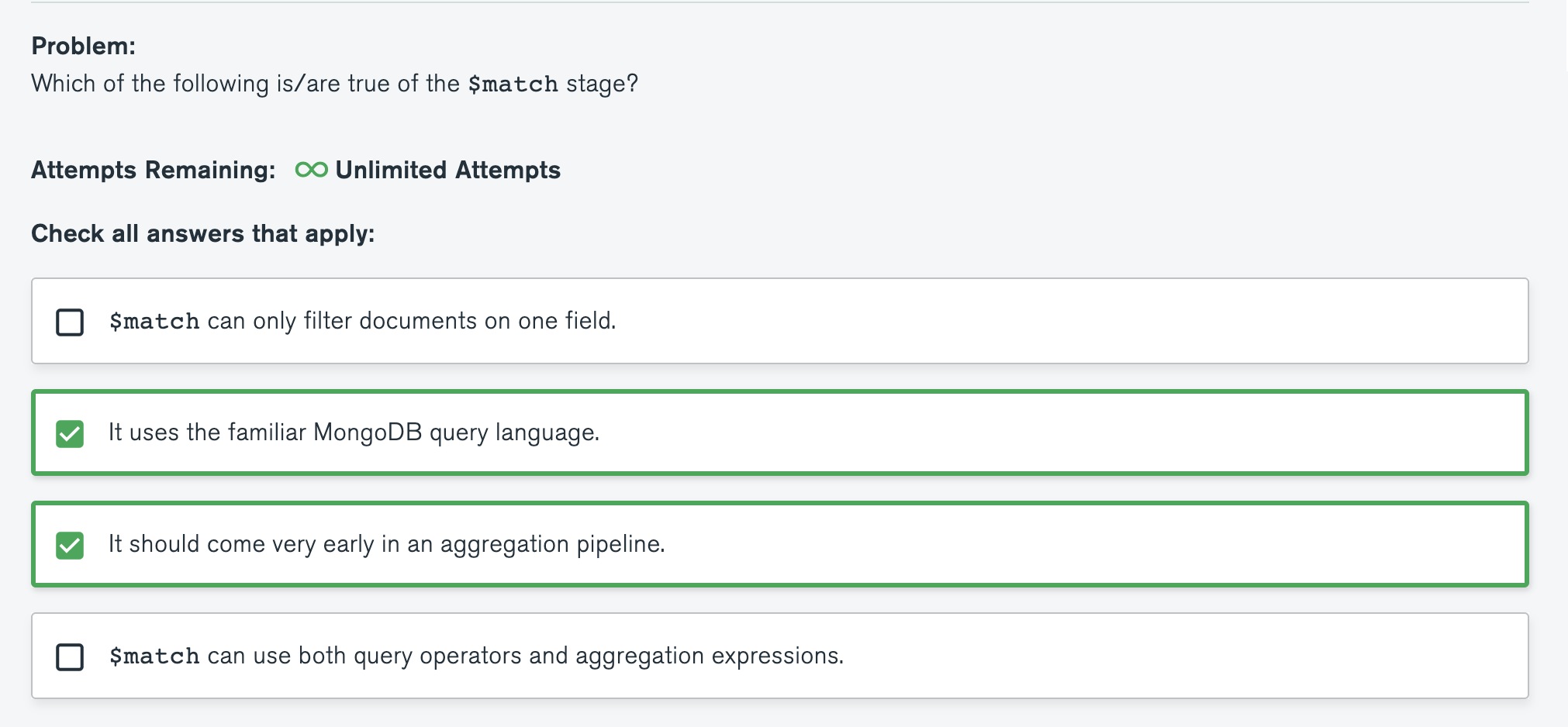 Quiz : Which of the following is/are true of the $match stage?